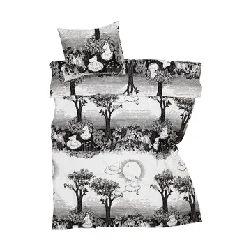 Σετ κρεβατιού Moomin 150 x 210 εκ. από την Moomin Arabia είναι ένα σετ κρεβατιού με παπλωματοθήκη και μαξιλαροθήκη κατασκευασμένες από βιολογικό βαμβάκι. Δημιουργήστε ομορφιά στην κρεβατοκάμαρα και κοιμηθείτε καλά σε μαλακά σεντόνια διακοσμημένα με μοτίβα από τον μαγικό κόσμο των Moomin.
