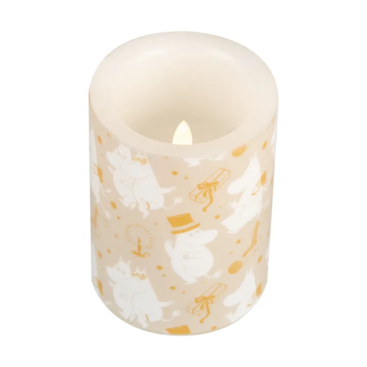 Το Moomin block κερί LED 10 cm από τη Muurla είναι σχεδιασμένο από την Kata Nowak-Kiminki και κατασκευασμένο από πλαστικό και παραφίνη. Το LED-κερί έχει δημιουργηθεί για να αναδείξει τα τυπωμένα έργα τέχνης από τον μαγευτικό κόσμο των Moomin. Εκπέμποντας ζεστό και άνετο φωτισμό, τα κεριά δίνουν στους προσεκτικά σχεδιασμένους καλλιτέχνες την προσοχή που τους αξίζει. Τα κεριά είναι σχεδιασμένα να μοιάζουν με κλασικά κεριά στιάρε και δημιουργούν μια ατμοσφαιρική ατμόσφαιρα στο Moomin-tema σπίτι σας. Ιδανικά για να προσθέσετε μια νότα μαγείας στη διακόσμησή σας.
