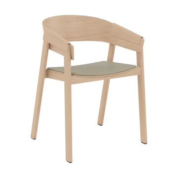 Η Cover Πολυθρόνα από Muuto είναι μια κομψή ξύλινη καρέκλα με δερμάτινο κάθισμα που προσφέρει μια αδιάκοπη εμφάνιση χάρη στην απουσία ορατών βιδών. Οι μινιμαλιστικές λεπτομέρειες με τη μορφή της καμπυλωτής πλάτης και των μπράτσων με επένδυση καπλαμά, σε συνδυασμό με το δερμάτινο κάθισμα, δίνουν στην καρέκλα μια στιβαρή και φιλόξενη έκφραση. Η Cover Πολυθρόνα με δερμάτινο κάθισμα είναι σχεδιασμένη από τον Thomas Bentzen και ταιριάζει εξίσου καλά στην τραπεζαρία όσο και στο υπνοδωμάτιο.