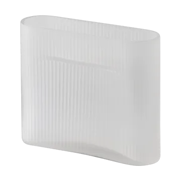 Το 'Ridge vase frostat glas 16,5 cm' από Muuto είναι κατασκευασμένο από γυαλί με ματ επιφάνεια που προσφέρει μια απαλή και κομψή αίσθηση. Η γλυπτική του μορφή και η διακριτική εσοχή δημιουργούν τόσο μια καλλιτεχνική έκφραση όσο και μια πρακτική λειτουργία που κρατά τα λουλούδια στη θέση τους. Ακόμη και χωρίς περιεχόμενο, το βάζο λειτουργεί ως ένα διακοσμητικό στοιχείο στον χώρο. Τοποθετήστε το σε ένα τραπέζι, ένα ράφι ή στο παράθυρο για να προσθέσετε μια κομψή και μοντέρνα λεπτομέρεια στη διακόσμηση.