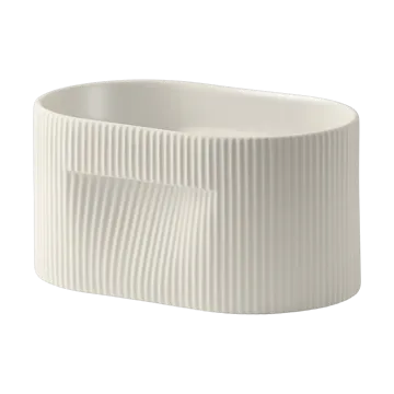 Η Ridge γλάστρα 13 cm από τη Muuto είναι κατασκευασμένη από κεραμικό με ματ επιφάνεια και εσωτερικό με λάκα που προσδίδει μια στιβαρή και αρμονική έκφραση. Η υποτυπώδης αυλακωτή άκρη και τα διακριτικά χειρολαβές την καθιστούν τόσο κομψή όσο και πρακτική. Ιδανική για μικρά φυτά, γήινες ή παχύφυτα, και ταιριάζει εξίσου ωραία σε ένα περβάζι παραθύρου όσο και σε ένα γραφείο ή ένα ράφι. Μια διαχρονική λεπτομέρεια που ανεβάζει το δωμάτιο και δημιουργεί μια φυσική ισορροπία στην εσωτερική διακόσμηση.