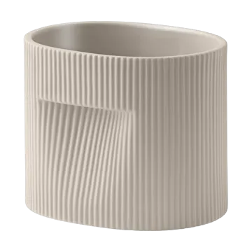 Το Ridge kruka 15 cm από Muuto είναι κατασκευασμένο από πηλό με ματ επιφάνεια και γυαλισμένο εσωτερικό που προσφέρει μια στιβαρή και αρμονική έκφραση. Η υποτυπώδης αυλάκωση και οι διακριτικές λαβές το καθιστούν τόσο κομψό όσο και πρακτικό. Ιδανικό για μικρότερα φυτά, βότανα ή παχύφυτα, και ταιριάζει εξίσου όμορφα σε ένα περβάζι παράθυρου, γραφείο ή ράφι. Μια διαχρονική λεπτομέρεια που αναβαθμίζει το δωμάτιο και δημιουργεί μια φυσική ισορροπία στη διακόσμηση.