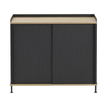 Συρταριέρα Enfold 100x45x85 εκ. από Muuto είναι κατασκευασμένη από βαμμένο ατσάλι και μασίφ δρυ. Αυτή η μοναδική συρταριέρα συνδυάζει βιομηχανική και οικεία αισθητική με τις ραβδωτές ατσάλινες πόρτες και τις ζεστές ξύλινες λεπτομέρειες. Με ρυθμιζόμενα ράφια και διακριτικά ανοίγματα για καλώδια, αποτελεί μια ευέλικτη λύση αποθήκευσης που ταιριάζει ιδανικά ως κονσόλα media, στον διάδρομο ή ως ψηλή αποθήκευση σε οποιοδήποτε δωμάτιο.