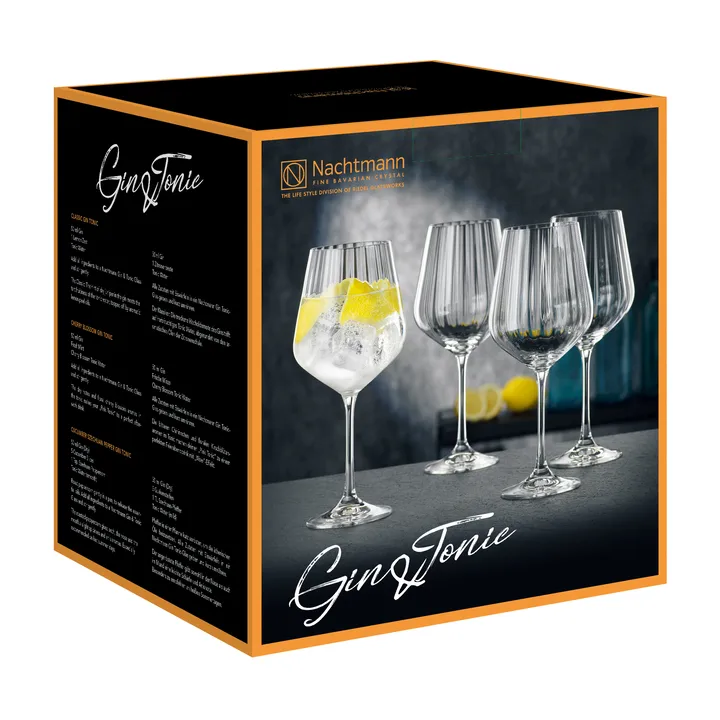 Τα ποτήρια Nachtmann Gin & Tonic ποτήρι 64 cl Συσκευασία 4 τεμαχίων είναι κατασκευασμένα από όμορφο κρυστάλλινο γυαλί και έρχονται σε συσκευασία των 4. Τα κομψά ποτήρια έχουν 24 κάθετες γραμμές που δημιουργούν μια εντυπωσιακή σιλουέτα. Χάρη στη βάση, το ποτό παραμένει πιο κρύο για περισσότερο χρόνο καθώς δεν χρειάζεται να αγγίξετε το κύπελλο. Τα ποτήρια είναι ειδικά σχεδιασμένα για Gin & Tonic, αλλά μπορούν επίσης να χρησιμοποιηθούν για να σερβίρουν άλλα ποτά και ποτά.