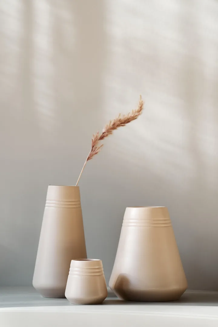 Lines βάζο 18 cm από NJRD είναι ένα κομψό πορσελάνινο βάζο σχεδιασμένο από τους Bernadotte & Kylberg, με τρεις διακριτικές εσοχές σε μορφή γραμμών που συνδέονται με την υπόλοιπη σειρά Lines. Το βάζο αναδεικνύει ένα όμορφο μπουκέτο ή μερικά κλαδιά, αλλά λειτουργεί εξίσου καλά και ως αυτόνομο διακοσμητικό στοιχείο. Χάρη στον καλοσχεδιασμένο του σχήμα, είναι εμφανώς ισορροπημένο και εύκολο στην τοποθέτηση στο σπίτι — τέλειο σε ένα βοηθητικό τραπεζάκι, στο χολ ή στον πάγκο της κουζίνας όταν θέλετε να δημιουργήσετε μια ζεστή και φιλόξενη ατμόσφαιρα.