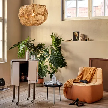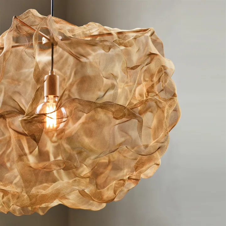 Heat κρεμαστό από τη Northern σχεδιάστηκε από την Johanna Forsberg και διαχέει ένα ζεστό, ζωντανό φως που μαγνητίζει το βλέμμα. Η γυαλιστερή σιλουέτα και το λαμπερό, ορειχάλκινο πλέγμα δημιουργούν μια μεταβαλλόμενη εντύπωση — σαν ένα λαμπερό σύννεφο όταν η λάμπα είναι αναμμένη και πιο ήπιο όταν είναι σβηστή. Το Heat λειτουργεί εξίσου καλά πάνω από το τραπέζι φαγητού όσο και στο σαλόνι και γρήγορα γίνεται αφορμή για συζήτηση στο σπίτι. Μια δημιουργική και εκφραστική λάμπα για όσους θέλουν να δώσουν στον χώρο χαρακτήρα και κίνηση.
