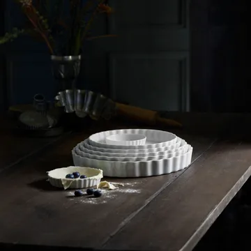 Αυτή η στρογγυλή φόρμα για πίτα με κυματιστό άκρο προέρχεται από την Pillivuyt και μπορεί να χρησιμοποιηθεί τόσο για την προετοιμασία όσο και για το σερβίρισμα είτε αλμυρών είτε γλυκών πιτών. Η Pillivuyt ήταν ο πρώτος κατασκευαστής πορσελάνης που σχεδίασε και εισήγαγε φόρμες για πίτες με το εμβληματικό κυματιστό άκρο που δίνει στην πίτα μια χαρακτηριστική και όμορφη εμφάνιση. Η φόρμα διατίθεται σε διάφορα μεγέθη, οπότε επιλέξτε μία ή περισσότερες που ταιριάζουν σε εσάς και στους καλεσμένους σας. Η πορσελάνη από τη γαλλική μάρκα Pillivuyt είναι ξεχωριστή για τη λειτουργικότητα, την ανθεκτικότητα και τον σχεδιασμό της. Σας δίνει τη δυνατότητα να απολαμβάνετε την πορσελάνη τόσο στην καθημερινότητα όσο και στις γιορτές για πολλά χρόνια ακόμη. Συνδυάστε εάν θέλετε με μια τετράγωνη ή ορθογώνια φόρμα στο ίδιο στυλ.
