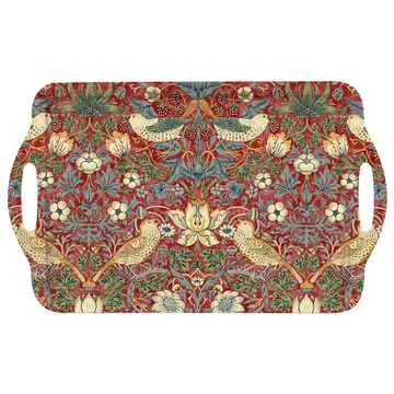 Ο Strawberry Thief δίσκος με λαβή από την Pimpernel έχει καλή ποιότητα και είναι ανθεκτικός καθώς και κομψός. Οι λαβές στις δύο πλευρές τον καθιστούν εύκολο στην χρήση και είναι ιδανικός ως δίσκος σερβιρίσματος. Αφήστε ευχαρίστως τον δίσκο στο στρωμένο τραπέζι μαζί με διάφορα αξεσουάρ για να δημιουργήσετε ένα ενδιαφέρον τραπέζι. Ο σχεδιασμός του δίσκου μάς μεταφέρει πίσω στο έτος 1875, όταν αυτό το κλασικό μοτίβο δημιουργήθηκε από την Morris & Co. Ο θρύλος πίσω από το μοτίβο μιλάει για έναν κηπουρό που κάθε χρόνο είχε την ατυχία με τη σοδειά φράουλας, καθώς την έτρωγαν άπληστα πουλιά. Το σχέδιο αντανακλά την ιστορία με έναν κομψό τρόπο και γίνεται επίσης διακοσμητική λεπτομέρεια στα σπίτια μας.