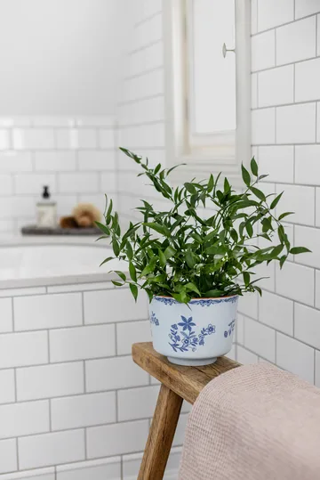 Η γλάστρα Ostindia από Rörstrand είναι κατασκευασμένη από υψηλής ποιότητας φελνσπατικό πορσελάνη. Το πλέον κλασικό μοτίβο του δοχείου είναι εμπνευσμένο από ένα κομμάτι πορσελάνης από ένα πλοίο που βυθίστηκε το 1745. Συνδυάστε τη πορσελάνινη γλάστρα με το αγαπημένο σας φυτό και τοποθετήστε την πάνω στο τραπέζι ή το περβάζι του παραθύρου.