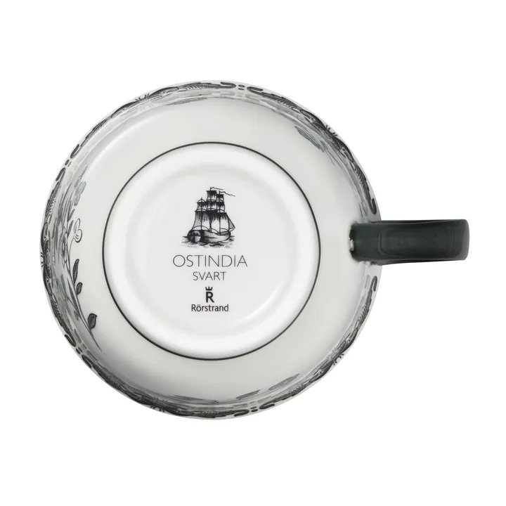 Το Ostindia μαύρη κούπα από τη σουηδική Rörstrand είναι μια ενημερωμένη έκδοση της κλασικής σειράς Ostindia. Το μοτίβο προέρχεται από ένα μικρό θραύσμα πορσελάνης από το Ostindiefararen Götheborg. Αυτή η μαύρη παραλλαγή της κλασικής μπλε-λευκής πορσελάνης φαίνεται κομψή και μοντέρνα. Φανταστική για να στρώσετε το τραπέζι σε γιορτή, αλλά και πολύ εκτιμημένη για καθημερινή χρήση!