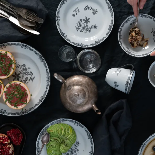 Η Ostindia μαύρο πιάτο συμπεριλαμβάνεται στη συνέχεια της πολύ δημοφιλούς και αγαπητής σειράς Ostindia μπλε-άσπρο από τη σουηδική Rörstrand. Το μαύρο χρώμα δίνει στον κλασικό σχεδιασμό μια κομψή και μοντέρνα αίσθηση. Το πιάτο γίνεται μια όμορφη λεπτομέρεια στο στρωμένο τραπέζι τόσο για καθημερινή χρήση όσο και για γιορτές.