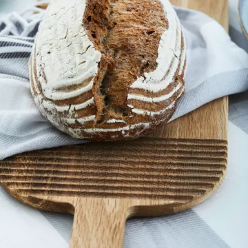 Μακρόστενη επιφάνεια κοπής μπαμπού σχεδιασμένη από τον Anton Björsing για τη Sagaform. Η στιβαρή λαβή της επιτρέπει να χρησιμοποιηθεί και για σερβίρισμα. Οι αυλακώσεις έχουν τόσο διακοσμητική όσο και πρακτική λειτουργία, καθώς εμποδίζουν, για παράδειγμα, να γλιστρούν εύκολα τα μαχαιροπίρουνα σερβιρίσματος και τα μαχαίρια τυριού.