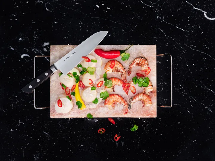 Satake πέτρα από αλάτι με βάση από Satake είναι μια πολυλειτουργική και φυσική πέτρα μαγειρέματος και σερβιρίσματος από αλάτι Ιμαλαΐων. Η πέτρα αντέχει τόσο θερμότητα όσο και ψύχος και προσδίδει μια απαλή, φυσική αλατότητα που αναδεικνύει τη γευστική εμπειρία στο τραπέζι. Ζεστάνετε αργά στο φούρνο ή στη σχάρα για να τηγανίσετε ψάρι, κρέας ή λαχανικά απευθείας πάνω στην πέτρα, ή παγώστε την στην κατάψυξη για να σερβίρετε κρύα πιάτα και επιδόρπια που παραμένουν φρέσκα. Παραδίδεται με πρακτική βάση για ασφαλές και κομψό σερβίρισμα. Εύκολη στο καθάρισμα με χλιαρό νερό — δεν χρειάζεται απορρυπαντικό.