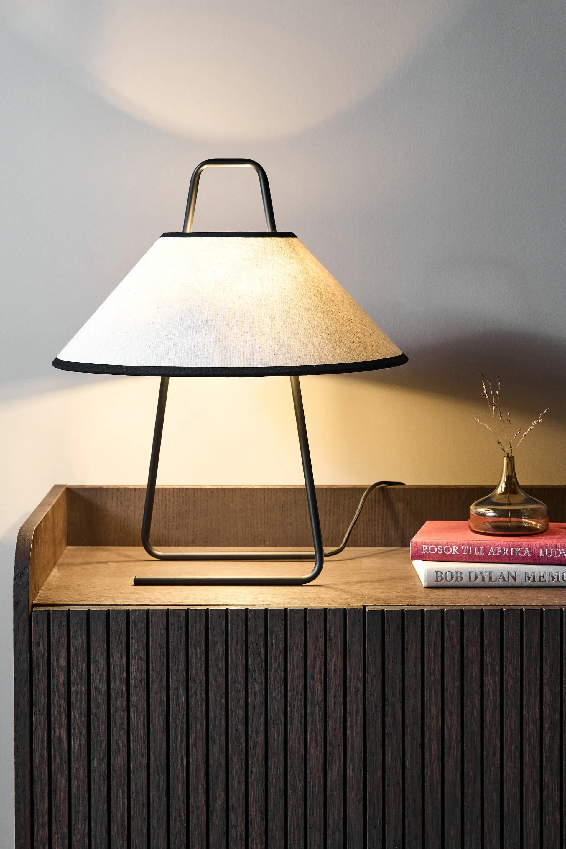 Επιτραπέζιο φωτιστικό Moss 43 cm από Scandi Living έχει μεταλλική βάση που στηρίζει κομψά μια λινή καπέλο με ραμμένα άκρα. Ο σχεδιασμός είναι εμπνευσμένος από ρετρό στυλ σε αρμονικό συνδυασμό με την αισθητική japandi και την απλότητα της αντίθεσης. Το φωτιστικό εκπέμπει ένα ζεστό, απαλό φως που δημιουργεί μια μοναδική και φιλόξενη ατμόσφαιρα. Ιδανικό ως ατμοσφαιρικός φωτισμός σε σαλόνι, υπνοδωμάτιο ή διάδρομο και μια διαχρονική λεπτομέρεια που αναδεικνύει τη διακόσμηση του χώρου.
