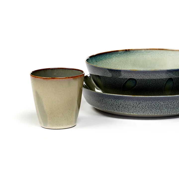 Μικρό φλιτζάνι σε πέτρινα αγγεία από τη σειρά Terres de Rêves σχεδιασμένο από τη σχεδιάστρια Anita Le Grelle για τη Serax. Το φλιτζάνι χωρίς χερούλι μπορεί να χρησιμοποιηθεί τόσο ως φλιτζάνι καφέ όσο και ως φλιτζάνι τσάι. Η αντιδραστική γλασούρα δίνει σε κάθε φλιτζάνι μια εντελώς μοναδική εμφάνιση. Το εξωτερικό και το εσωτερικό του φλιτζανιού έχουν διαφορετικό χρώμα στη γλασούρα, δίνοντας στο φλιτζάνι μια επιπλέον διάσταση. Η ιδέα για τα πέτρινα σκεύη προήλθε τυχαία όταν η Anita αποσύνθεσε ένα από τα παλιά της έργα τέχνης σε πηλό. Τα αποσυναρμολογημένα μέρη του γλυπτού που έμοιαζε με πύργο έγιναν η βάση για τα πέτρινα σκεύη Terres de Rêves. Με τον καιρό και τη αυξανόμενη ζήτηση, η σειρά έχει επεκταθεί και σήμερα περιλαμβάνει τόσο φλιτζάνια, κούπες, πιάτα, μπωλ και δίσκους σε μια ποικιλία μεγεθών, σχημάτων και χρωμάτων. Αναμείξτε και ταιριάξτε με τα υπόλοιπα μέρη της σειράς Terres de Rêves ή μείνετε σε ένα ή δύο χρώματα για μια πιο συνεκτική εμφάνιση.