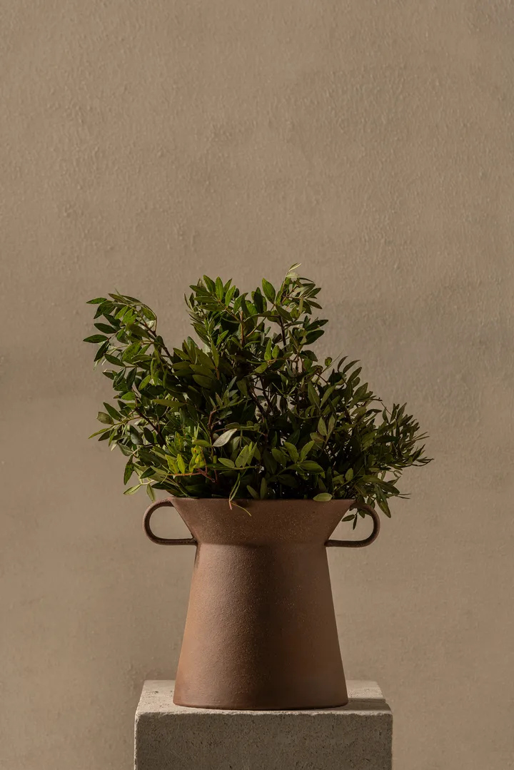 Urban 03 βάζο L 21 cm από Serax έχει σχεδιαστεί από τη Marie Michielssen. Κατασκευασμένο από κόκκινο πηλό με επιπλέον chamotte, διαθέτει αυθεντική, ματ υφή. Η αδιαφανής, μη γυαλισμένη εξωτερική επιφάνεια προσδίδει ρουστίκ αίσθηση, ενώ το εσωτερικό είναι αδιάβροχο χάρη σε επίστρωση σιλικόνης. Με την αρχετυπική, γεωμετρική μορφή του ταιριάζει σε πολλά διαφορετικά σπίτια και περιβάλλοντα.