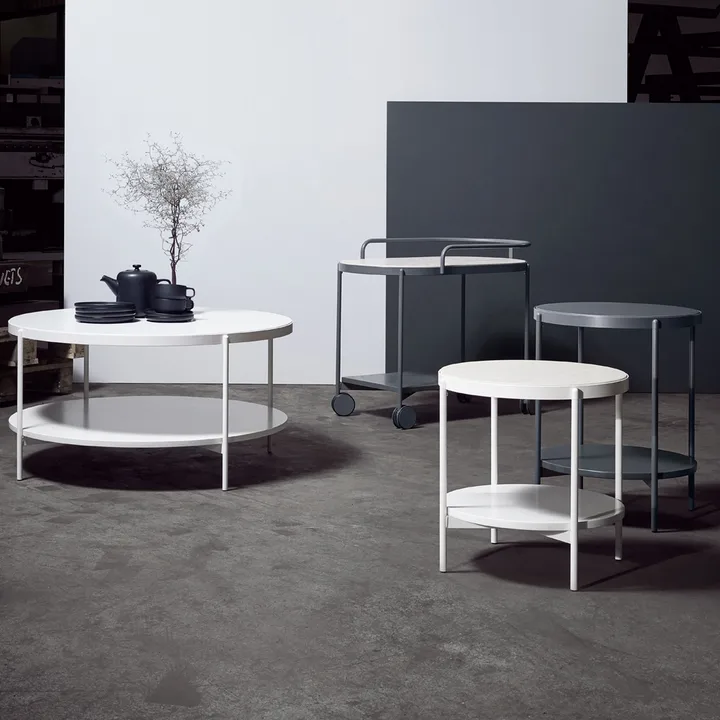 Καροτσάκι σερβιρίσματος, Lene από SMD Design δημιουργημένο από τη Stina Sandwall συνδυάζει λειτουργικότητα και σχεδιασμό σε μια κομψή λύση για το σπίτι σας. Με μεταλλικό σκελετό και λεία ηλεκτροστατική βαφή, προσφέρει αντοχή και εύκολη μετακίνηση. Διατίθεται σε διάφορες εκδόσεις: μονόχρωμο ή δίχρωμο, όπου η κορυφαία επιφάνεια είναι είτε βαμμένο MDF είτε φύλλο φινιρισμένου λευκοπυρηνικού φτελιάς (white-pigmented ash veneer). Ιδανικό για έκθεση ή αποθήκευση αντικειμένων και μια στιλάτη προσθήκη σε κάθε εσωτερικό χώρο.