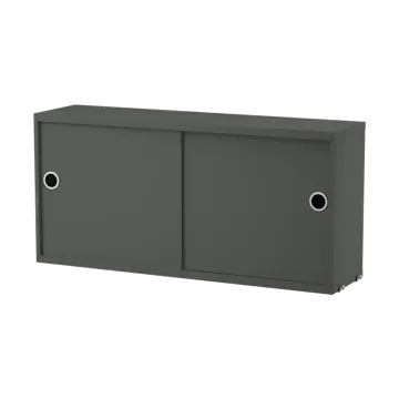 Ντουλάπι String με συρόμενη πόρτα από String έχει σχεδιαστεί από τον Nisse Strinning. Αυτό το ντουλάπι ταιριάζει άριστα τόσο στο String System όσο και στο String Plex. Ο Strinning έγινε γνωστός για το σύστημα βιβλιοθηκών Stringhyllan, που δημιούργησε το 1949 μαζί με τη σύζυγό του Kajsa, και αυτό το ντουλάπι αποτελεί μια διαχρονική επέκταση του χαρακτηριστικού τους design και της λειτουργικότητας.