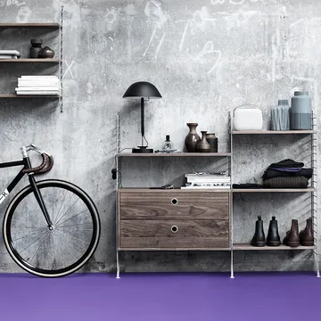 Ντουλάπι String με συρτάρια από String, σχεδιασμένο από τον Nisse Strinning, είναι μέρος της κλασικής Stringhylla. Αυτή η μονάδα έχει δύο συρτάρια με στρογγυλά χερούλια, όπως οι πόρτες ντουλαπιού στην ίδια σειρά. Ταιριάζει τέλεια με όλες τις μεταλλικές και plex πλευρές του String System με βάθος 30 cm. Συνδυάστε ελεύθερα για να δημιουργήσετε το μοναδικό σας σύστημα αποθήκευσης. Εξερευνήστε απεριόριστες δυνατότητες με τα στοιχεία του String System.