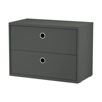 Ντουλάπι String με συρτάρια από String, σχεδιασμένο από τον Nisse Strinning, είναι μέρος της κλασικής Stringhylla. Αυτή η μονάδα έχει δύο συρτάρια με στρογγυλά χερούλια, όπως οι πόρτες ντουλαπιού στην ίδια σειρά. Ταιριάζει τέλεια με όλες τις μεταλλικές και plex πλευρές του String System με βάθος 30 cm. Συνδυάστε ελεύθερα για να δημιουργήσετε το μοναδικό σας σύστημα αποθήκευσης. Εξερευνήστε απεριόριστες δυνατότητες με τα στοιχεία του String System.