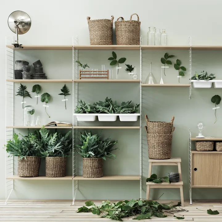 Ράφι String από String, σχεδιασμένο από τον Nisse Strinning, αποτελεί μέρος του ευέλικτου String System. Προσφέρει πολλές συνδυαστικές δυνατότητες με τα εμβληματικά του πάνελ συρμάτων. Προσαρμόστε το ράφι σύμφωνα με τις ανάγκες και δημιουργήστε μια προσωπική λύση αποθήκευσης.