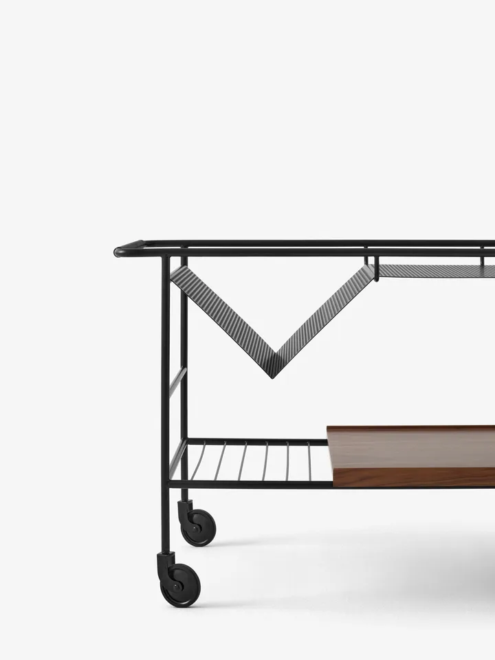 Το καροτσάκι αποθήκευσης Alima βερνικωμένη καρυδιά από &Tradition είναι σχεδιασμένο από το Note Design Studio και κατασκευασμένο από ατσάλι με δίσκο από καρυδιά. Με ενσωματωμένο σχήμα V, χωράει βιβλία, περιοδικά και άλλα αντικείμενα που θέλεις να έχεις κοντά σου όταν, για παράδειγμα, δουλεύεις από το σπίτι.