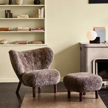 Little Petra ATD1 υποπόδιο από &Tradition προσφέρει στρογγυλεμένα πόδια σε δρυ ή καρυδιά και επένδυση σε δέρμα προβάτου ή boucle. Προσθέτει μια ζεστή αίσθηση σε κάθε χώρο. Συνδυάστε με την πολυθρόνα Little Petra για μια γευστική lounge γωνιά.