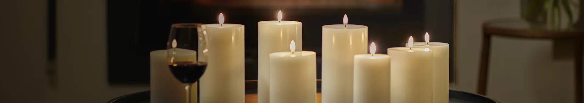 Η μεγάλη γκάμα ρεαλιστικών LED φώτων της Uyuni Lighting σε κεριά τσαγιού, κεριά μπλοκ και κεριά κωνικής λυχνίας