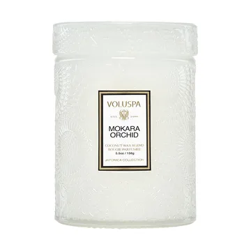 Η Japonica είναι ένα μικρό αρωματικό κερί σε γυάλινο βάζο από την Voluspa. Το χειροποίητο αρωματικό κερί είναι κατασκευασμένο από ένα μείγμα κεριού καρύδας χωρίς φθαλικές ενώσεις, παραβένες και θειικά άλατα. Το γυάλινο βάζο με καπάκι έχει μια όμορφα ανάγλυφη επιφάνεια που κάνει το αρωματικό κερί μια διακοσμητική λεπτομέρεια σπιτιού ενώ ταυτόχρονα διαχέει μια ευχάριστη μυρωδιά στο σπίτι.