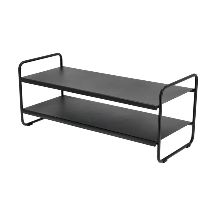 Η ραφιέρα παπουτσιών Ράφι παπουτσιών A-shoe rack 33x80 εκ. από την Zone Denmark είναι κατασκευασμένη από βαμμένο με πούδρα χάλυβα και συνδυάζει λειτουργικότητα και αισθητική. Εύκολη στη μετακίνηση και ταιριάζει τέλεια κάτω από την κρεμάστρα ρούχων. Δύο ράφια με χώρο για έξι ζευγάρια παπούτσια καθώς και σανδάλια από κάτω. Τα ανοικτά άκρα και τα αιωρούμενα ράφια δίνουν μια ελαφριά εμφάνιση.