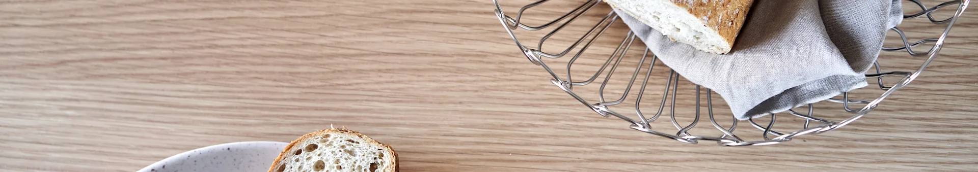 Σερβίρετε φρεσκοψημένο ψωμί τσιαμπάτα, σίκαλης ή ολικής αλέσεως σε ένα κομψό καλάθι ψωμιού πολυτελής ποιότητας. Η συλλογή μας περιλαμβάνει καλάθια ψωμιού σε μια σειρά υλικών, μεγεθών και στυλ που μπορείτε να επιλέξετε από μερικές από τις αγαπημένες μάρκες σχεδιασμού της Σκανδιναβίας.