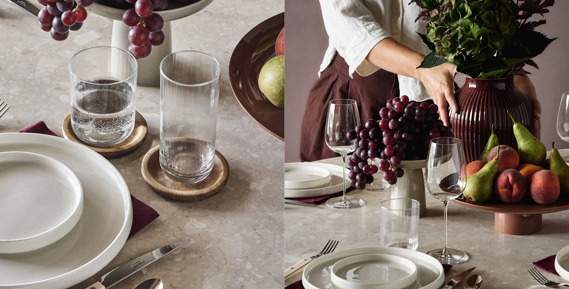 Για παράδειγμα, η συλλογή ποτηριών Ripple της Ferm Living περιλαμβάνει ποτήρια σαμπάνιας, ποτήρια κρασιού, μακρόστενα ποτήρια και άλλα, όλα κατασκευασμένα από όμορφο φυσητό γυαλί με κομψή ραβδωτή επιφάνεια.
